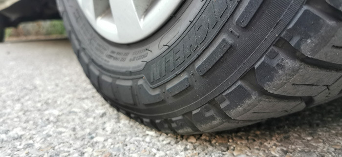 Le gros point faible des pneus routiers est la faible épaisseur des flancs. Ils sont sensible à la coupe. C'est encore plus vrai avec un véhicule lourd, chargé, en pente, en dévers, qui tracte.